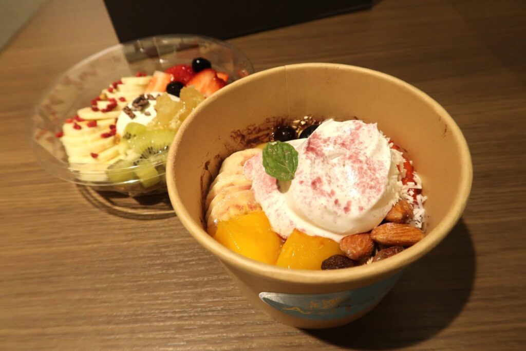 テイクアウトもOK。右から 「オリジナルMサイズ 1,200円(税込)」 「フルーツグリークヨーグルトコムハニー 1,480円(税込)」