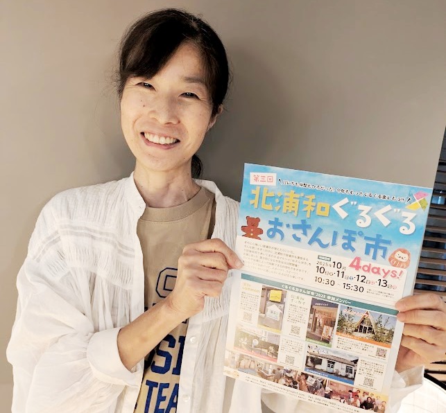 北浦和ぐるぐるおさんぽ市メンバー、マーブルテラスの若尾朋子さん。「それぞれの個性が違う会場を巡って楽しんで下さい!」