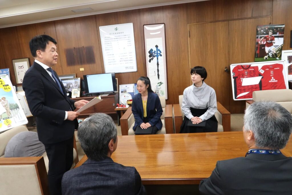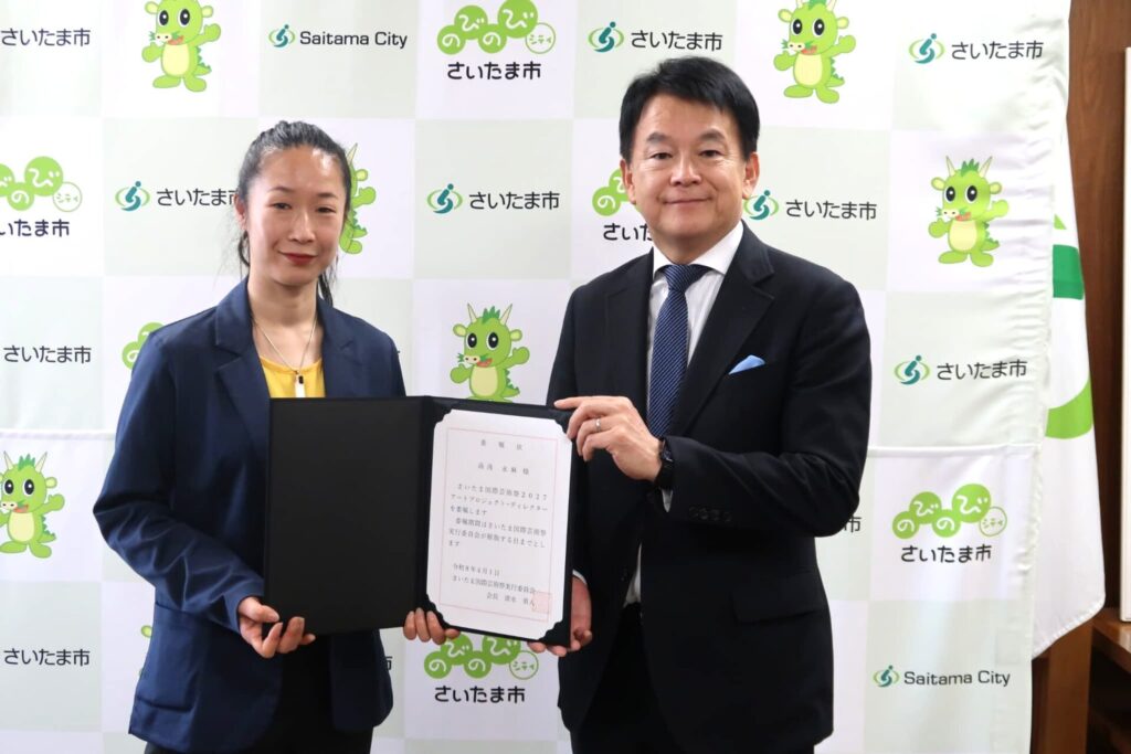来年の秋に開催を予定している「さいたま国際芸術祭2027」。就任が決定したディレクターの2人へ、4月16日さいたま市役所にて清水勇人さいたま市長から委嘱状が手渡されました。