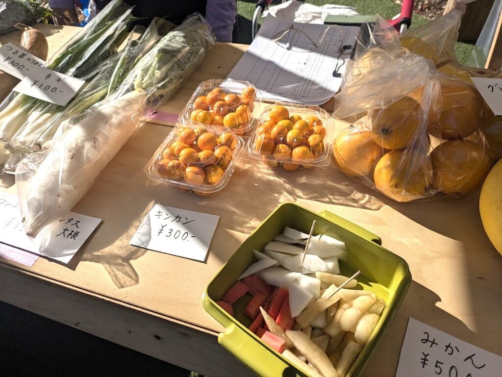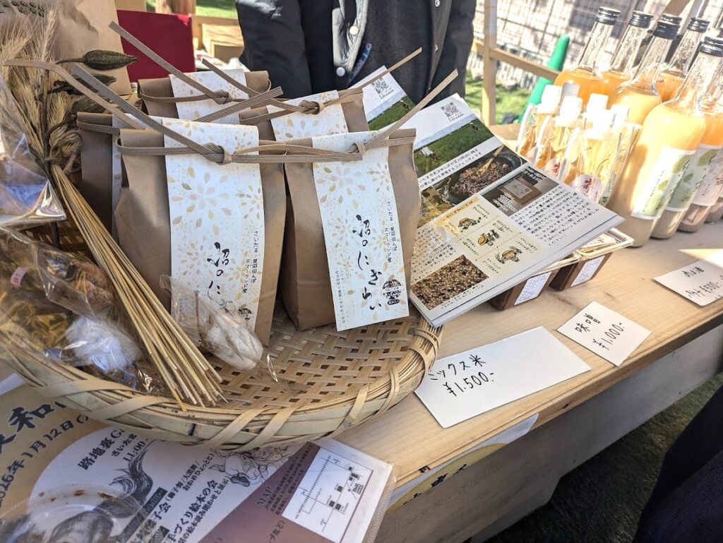 ヌマーランドで生産された野菜や米、味噌などを販売。試食をいただきながら、商品の説明や、レシピなどを教えてくれました