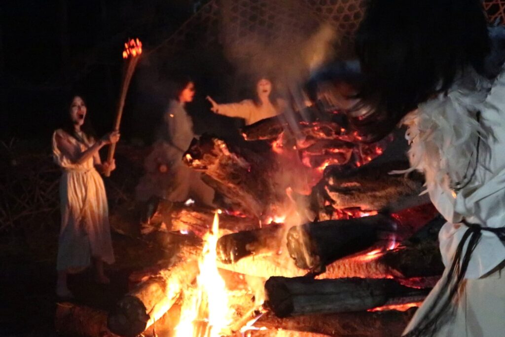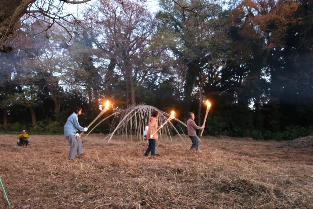 きや柿渋染め、畑で採れた作物を使って囲炉裏(いろり)や竈門(かまど)での料理体験や、野外作品、アーティストによる身体表現のパフォーマンスなど多彩なプログラムが展開。