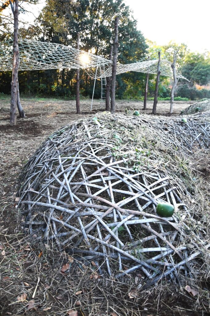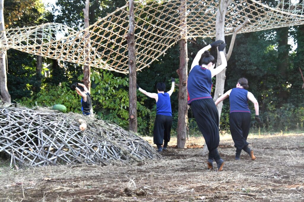 きや柿渋染め、畑で採れた作物を使って囲炉裏(いろり)や竈門(かまど)での料理体験や、野外作品、観覧者も参加できるアーティストによる身体表現のパフォーマンスなど多彩なプログラムが展開されました。