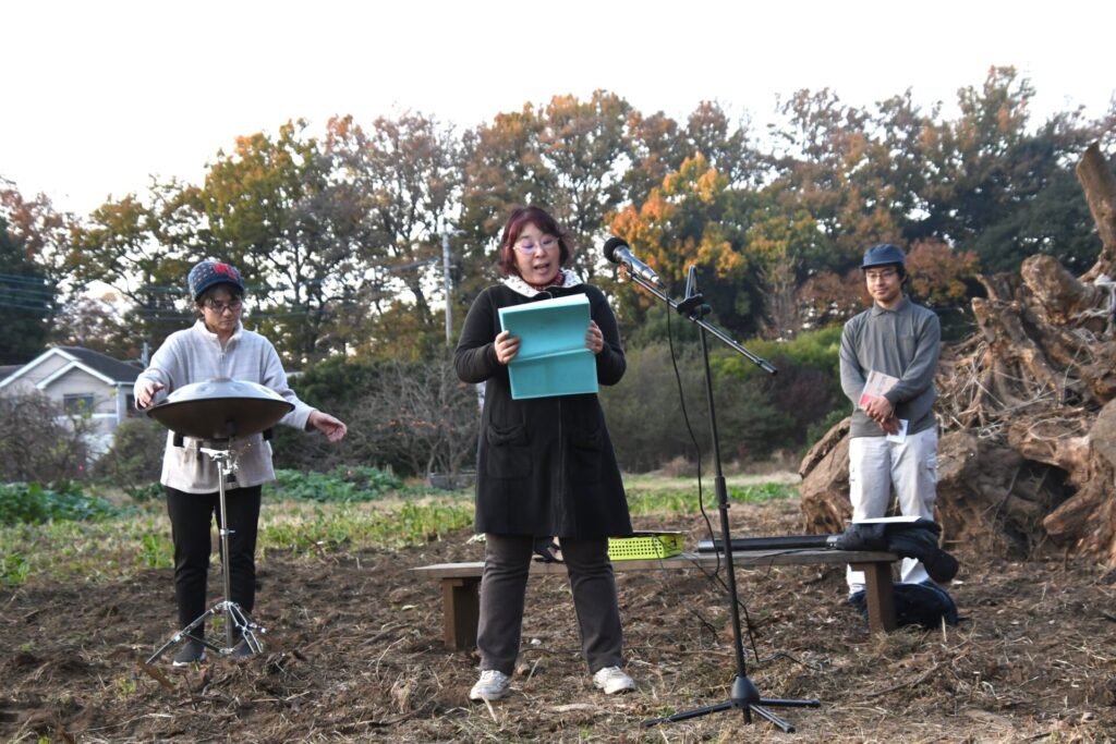 22日には埼玉に生まれた日本初の農民詩人、 渋谷定輔の「野良の叫び」が演奏に合わせ朗読されました。