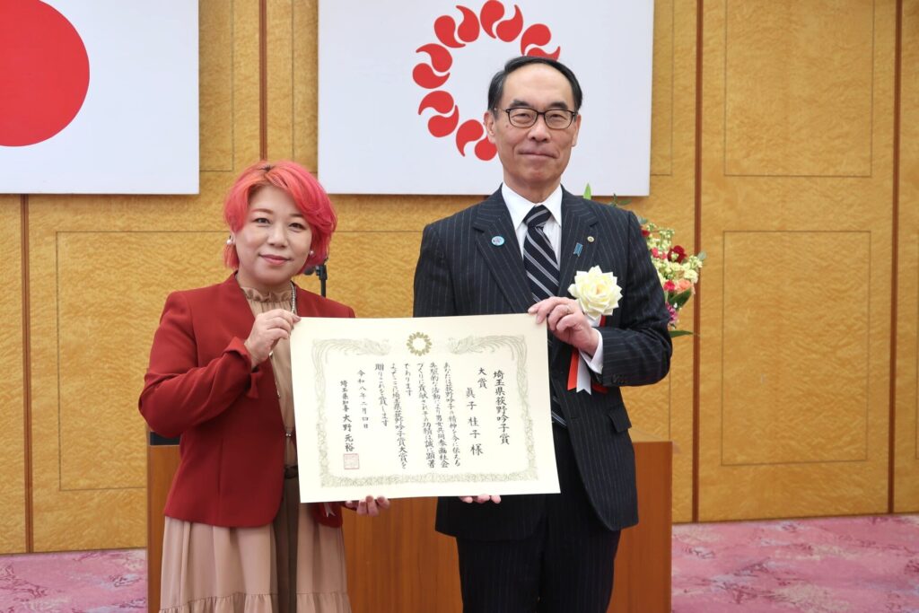 大賞は、医療美容師やセラピスト芸人として活動している眞子桂子さん(東松山市在住)と、梅農園「山口農園」代表の山口由美さん(越生町在住)の2人。