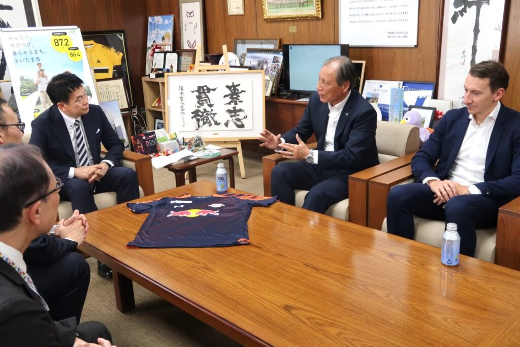 明治安田J2・J3百年構想リーグ開幕に向けて、RB大宮アルディージャの原博実社長ら関係者が2月5日さいたま市役所を訪れ、清水勇人さいたま市長に決意を語りました。